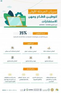 وتضمن توطين قطاع ومهن الاستشارات في مرحلته الأولى توطين مهن الاستشاريين والأخصائيين الذين يمارسون أعمال الاستشارات في القطاع بنسبة 35% حيث من المتوقع أن توفر فرصًا وظيفية للمواطنين والمواطنات.