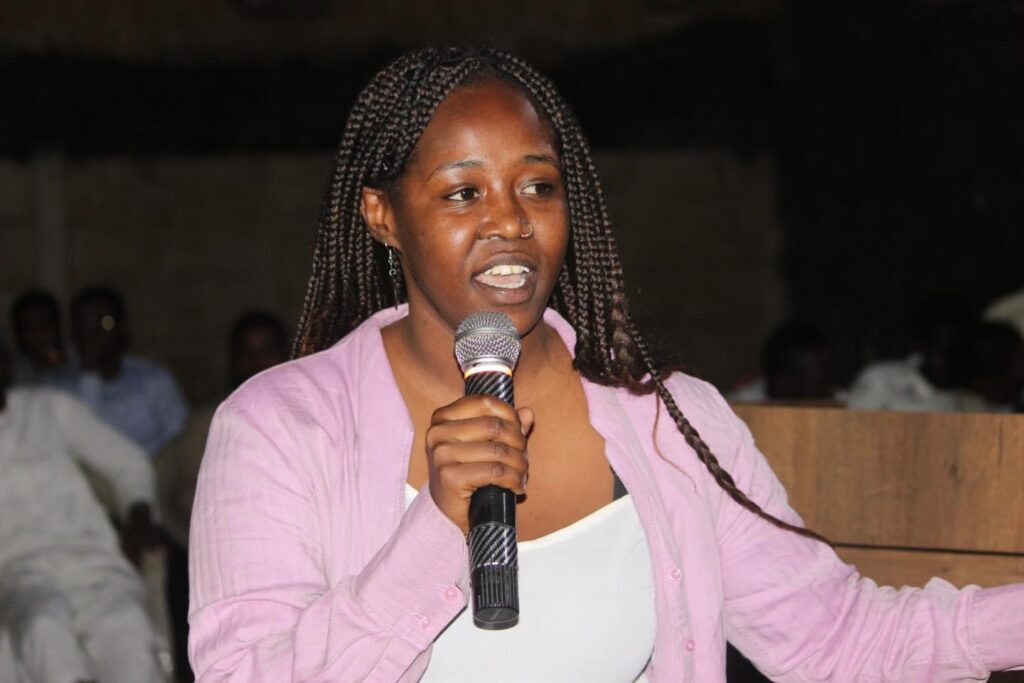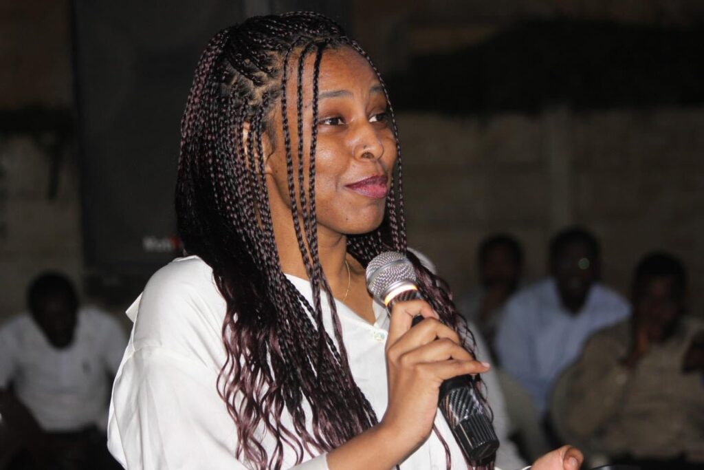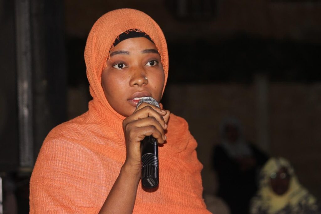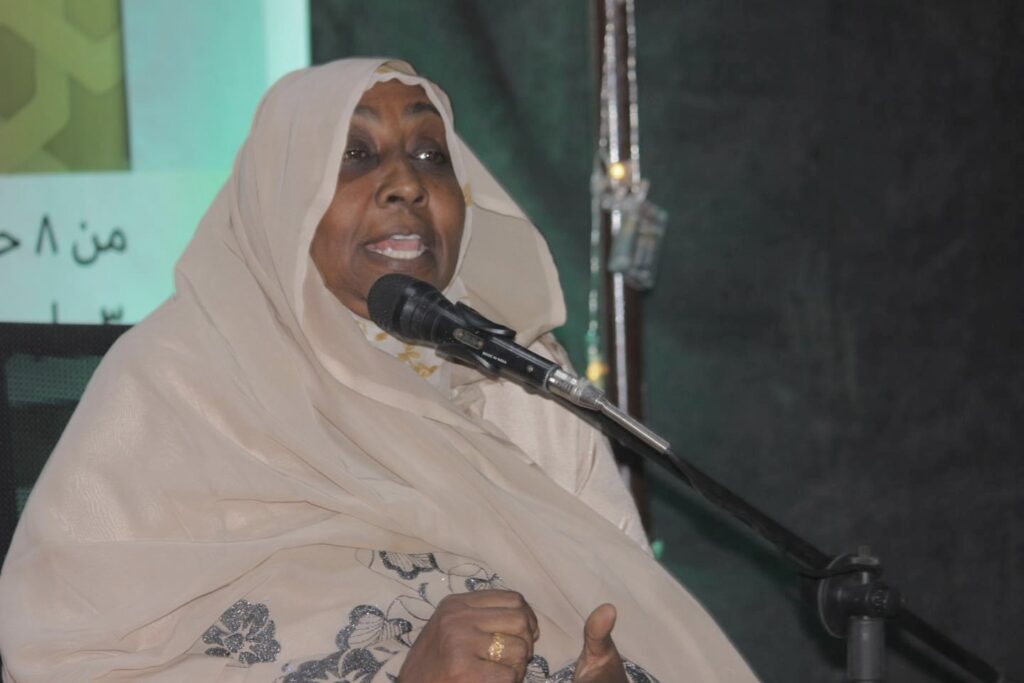 حيث تساءلت في مداخلة : “ وجود ممثل حزب المؤتمر الشعبي و إعتلاء المنصة، ده بي ياتو باب؟ ” و أستطردت قائلة : ” ده من باب نرخي جِسمنا و نخلي الإطاري يمشي و لا من ياته باب” .