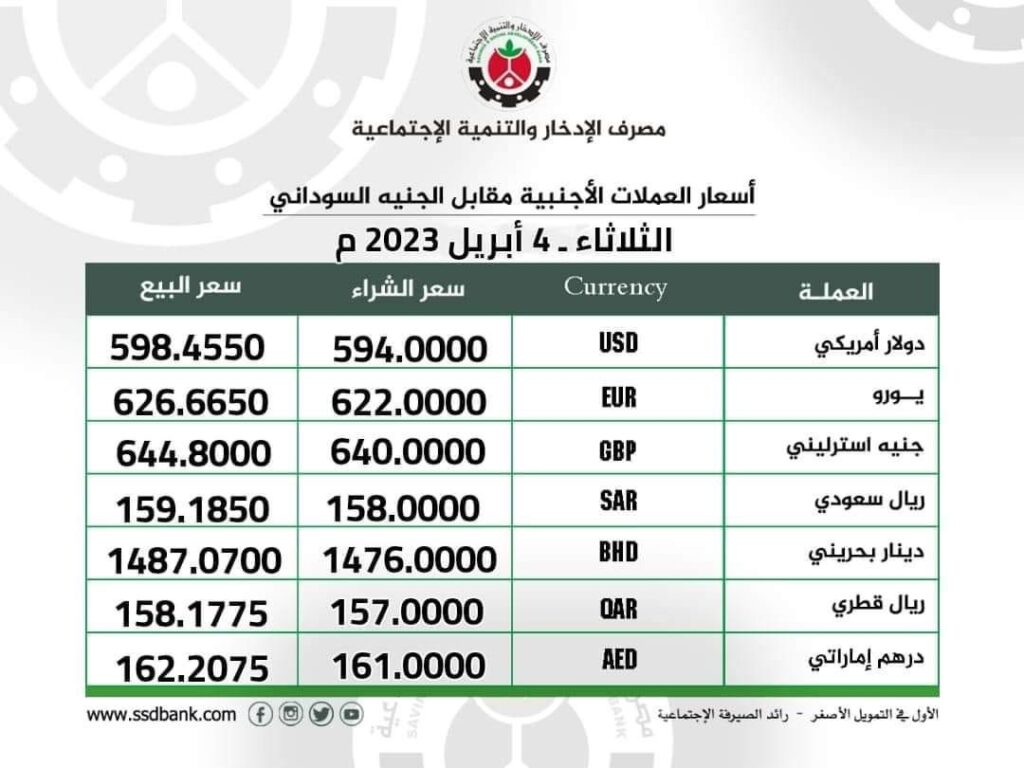 اسعار العملات اليومية في عدد من البنوك السودانية.