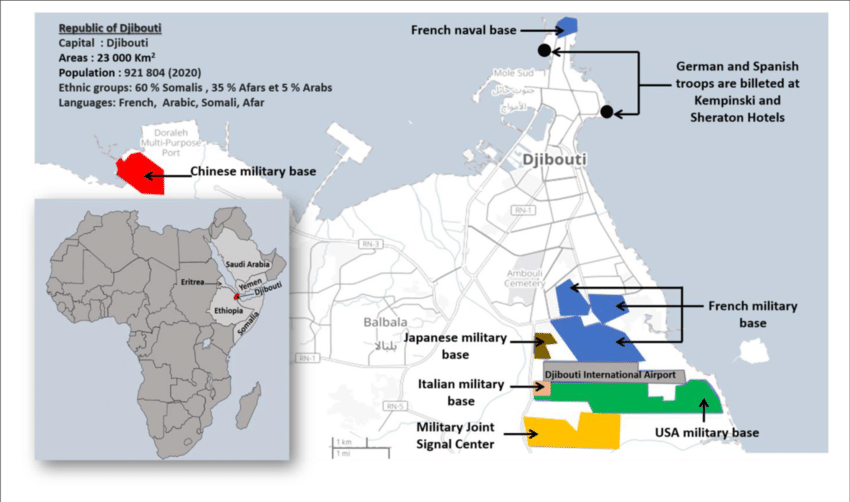 For this reason, many countries have chosen to build military bases in Djibouti right at the Bab-el-Mandeb naval passage. France, the former colonial power, still has one of the largest contingents of its overseas forces stationed there. Japan’s only foreign military base is undergoing expansion as a counterweight to China’s increasing influence. Likewise, the only permanent U.S. military installation in Africa is in Djibouti, and the Italian military base hosts troops from Germany and Spain. The United States established its Camp Lemonnier after the terrorist attacks of 9/11.