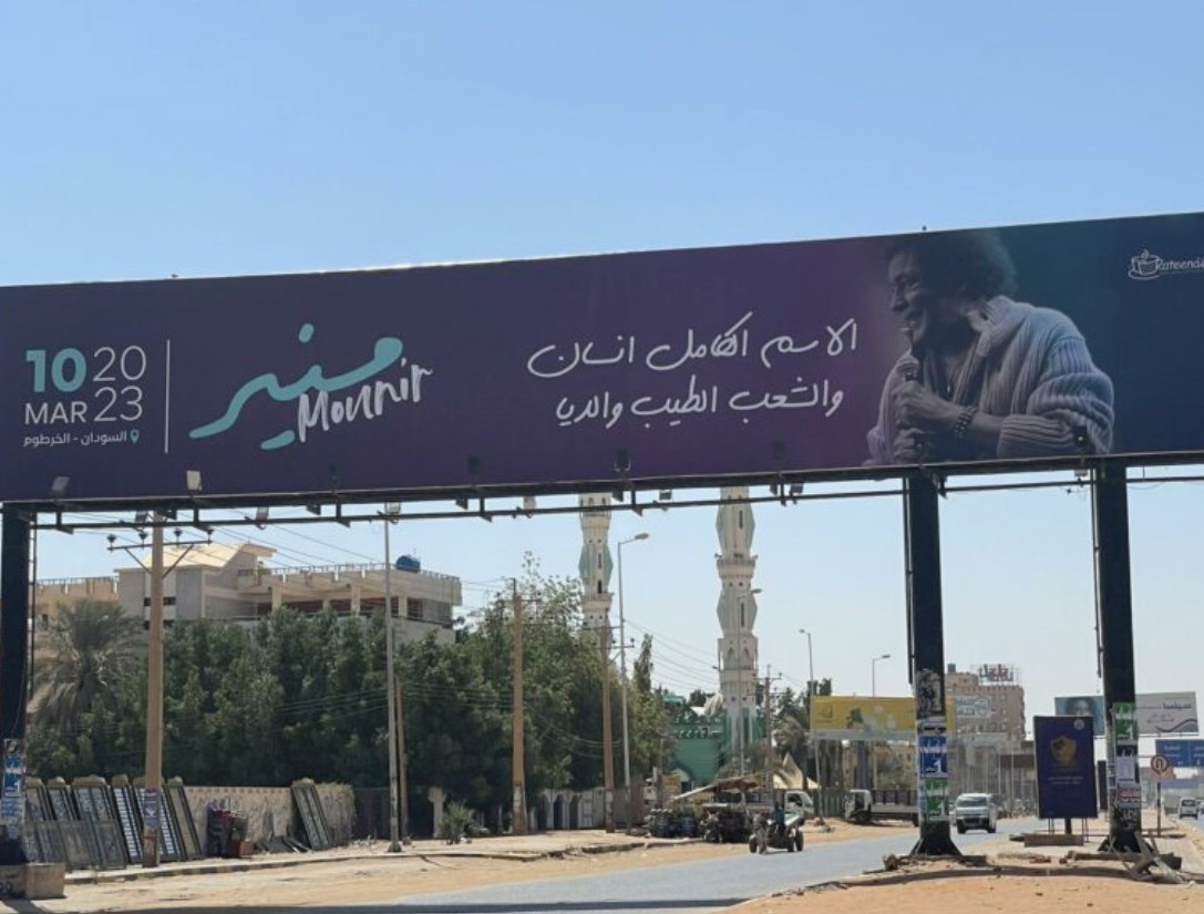 تداول مستخدمو مواقع التواصل الاجتماعي، صور لإعلانات حفل الفنان محمد منير المقرر إقامتها الشهر القادم، والتي اجتاحت شوارع السودان.