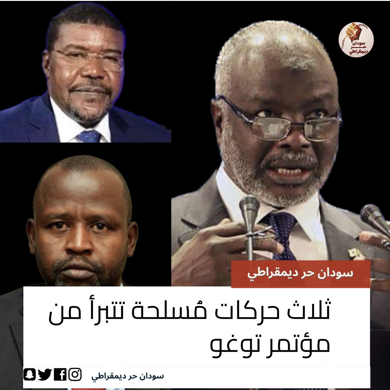نفت ثلاث حركات مُسلحة في دارفور السبت، مُشاركتها في المؤتمر المُزمع عقده غداً بدولة توغو لبحث إبعاد الإقليم المضطرب من شبه الحرب الأهلية، بوقت تتزايد المخاوف من أن تؤدي توصيات المؤتمر الذي ترعاه قوات الدّعم السريع الى انقسام دارفوري بعد رفض واسع للمشاركة فيه.