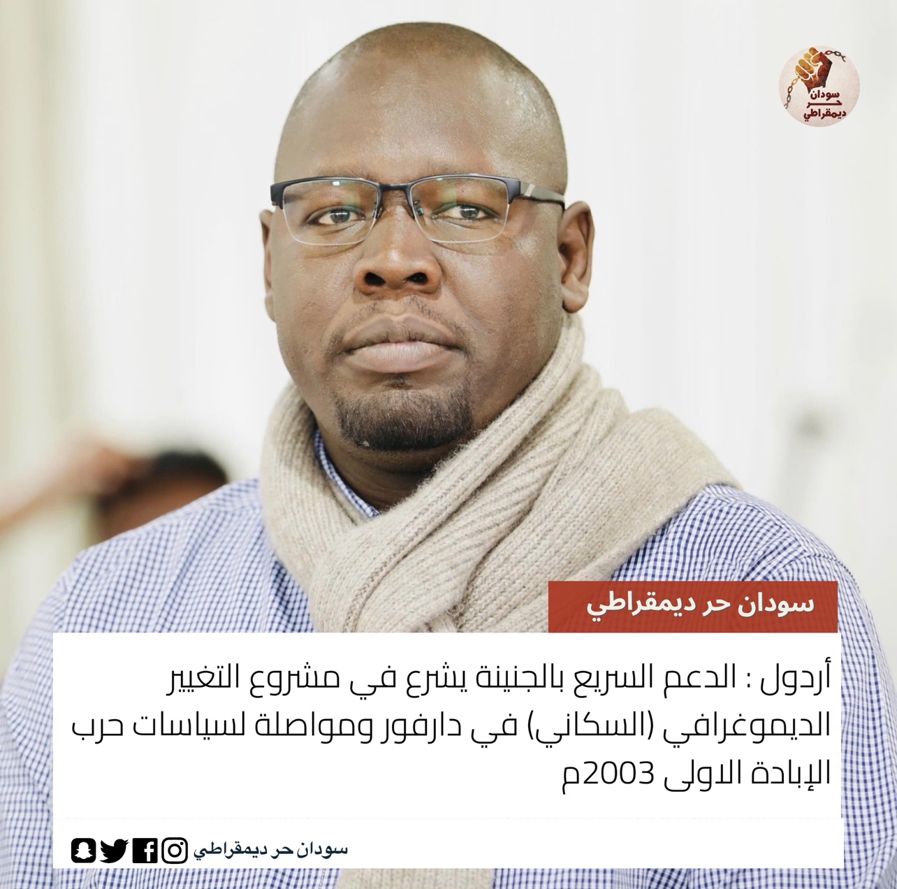 غرّد مبارك أردول رئيس المكتب السياسي للتحالف الديمقراطي للعدالة الإجتماعية عن عمليات الإحلال و الإبدال التي تجري بمدينة الجنينة قائلاً :-