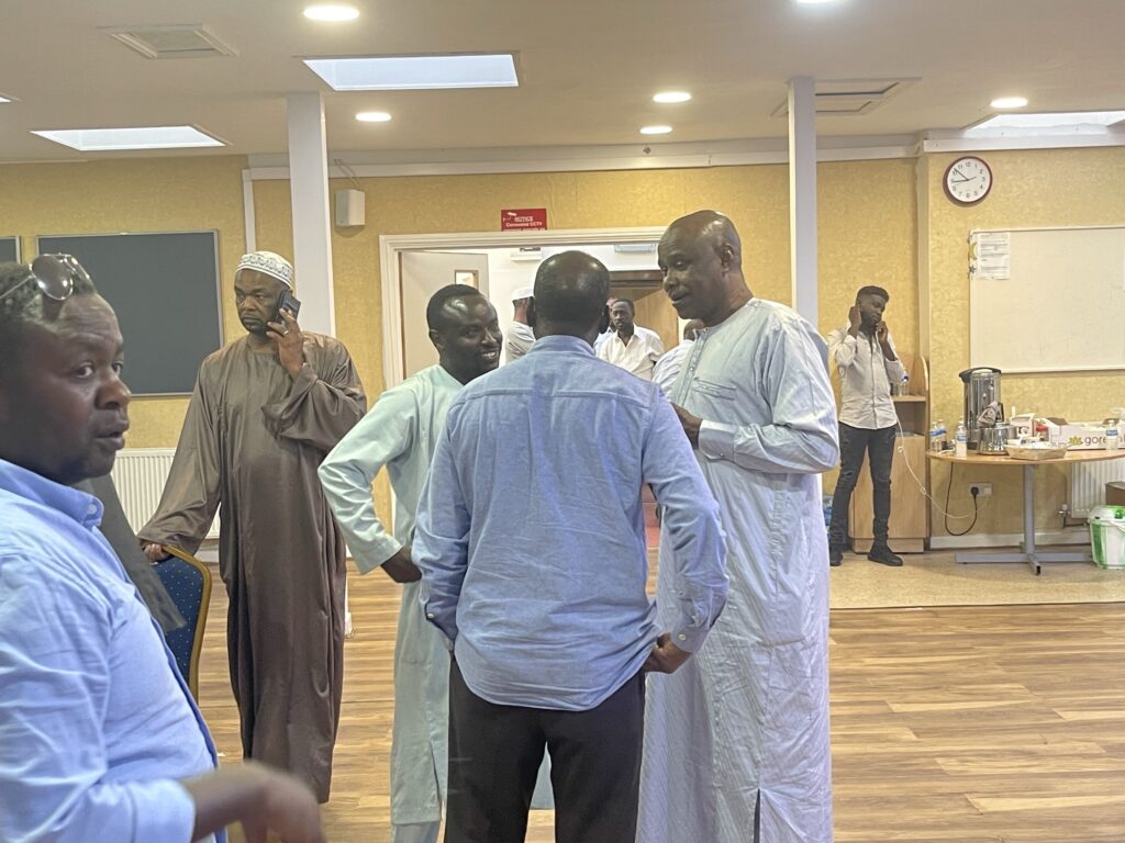 بمدينة بيرمنجهام الجمعة الموافق ١٦ يونيو ٢٠٢٣ أقيم العزاء بدار جمعية وادي هور الخيرية أحدى جمعيات الجالية السودانية بالمملكة ، حيث تُلِي القرآن على روح الحاج حسين في حضور عدد مُقدّر من أبناء الجالية السودانية بمدينة بيرمنجهام و دُعي له بالمغفرة على روحه الطاهرة .