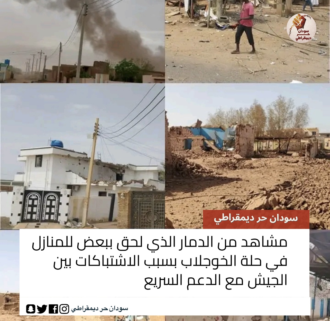 صور و مشاهد من الدمار الذي لحق ببعض للمنازل في حلة الخوجلاب بسبب الاشتباكات بين الجيش مع الدعم السريع