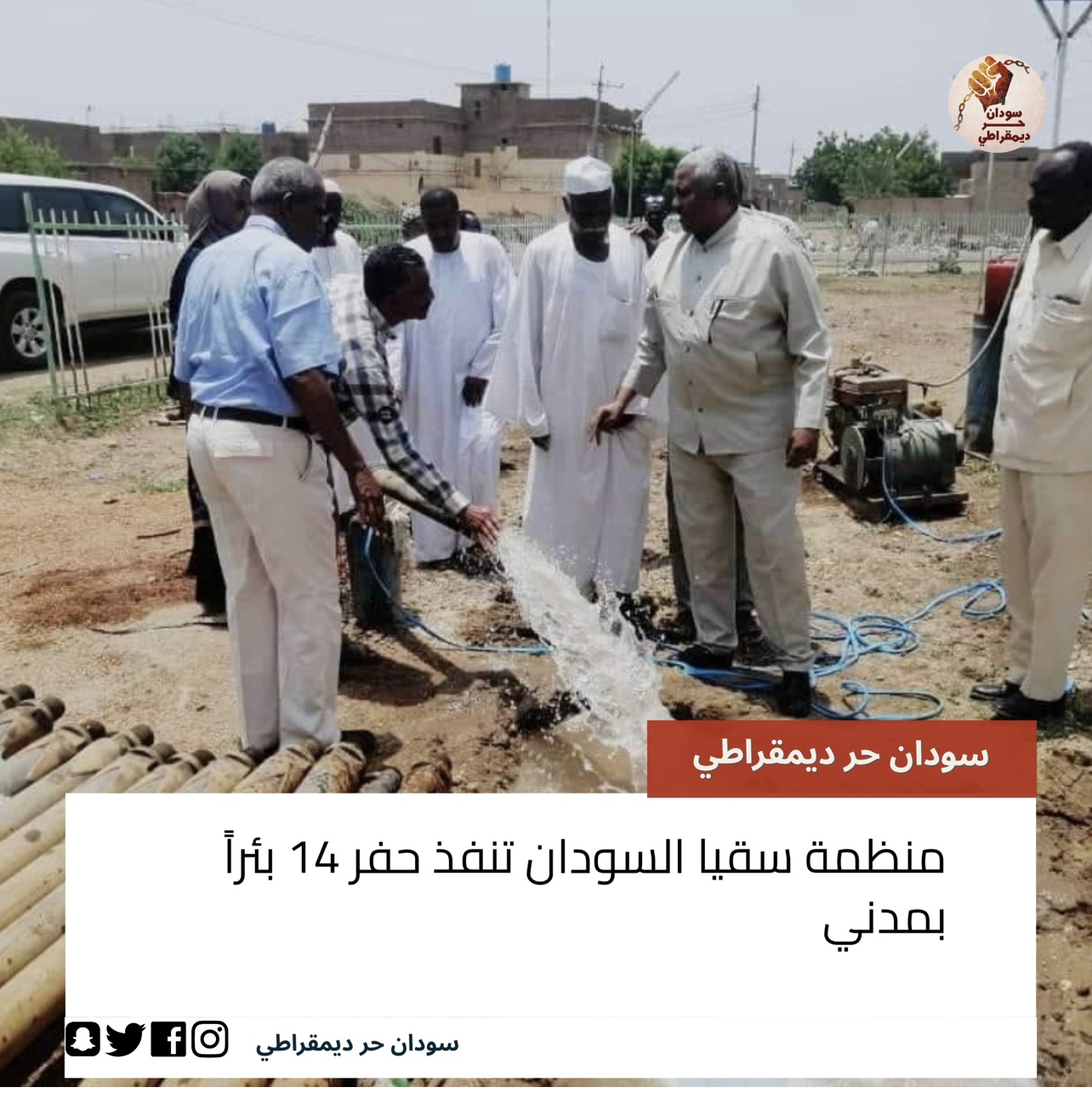 من جانبه كشف المهندس غسان حسين مسؤول المياه الجوفية بمنظمة سقيا السودان ان متوسط أعماق الآبار في مدينة مدني 280 – 350 قدم ويستغرق التنفيذ 10 أيام للوصول للخزان الجوفي وتشمل النظافة والتطهير وتجربة الإنتاج مبيناً أن خطة المنظمة حفر آبار مدني ثم الإنطلاق لقرى ومدن الولاية الأخرى.