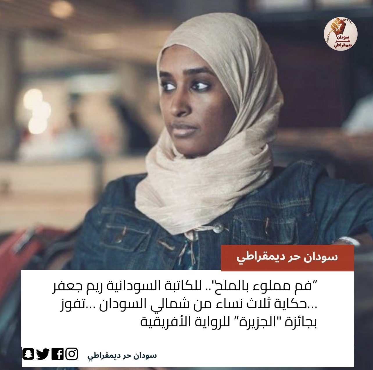 الخرطوم- المرأة، والعنصرية، والعادات والتقاليد ثالوثٌ تكشف عنه رواية “فم مملوء بالملح” (A Mouth Full of Salt)، المكتوبة باللغة الإنجليزية، عبر خيوط قصة وقعت أحداثها قبل أكثر من 30 عامًا، لكن فارق الزمن لم يغير شيئًا، إذ ترى ريم جعفر -أول سودانية تفوز بجائزة “الجزيرة” (The Island) للرواية الأفريقية- أن هذه الرواية يمكن أن تكون واقعا خلال عام 2023 في مناطق ليست بعيدة من العاصمة السودانية الخرطوم.