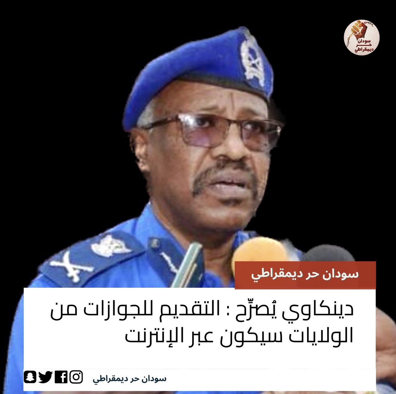 صرح اللواء محمد عثمان دينكاوي مدير الإدارة العامة لشرطة الجوازات :
