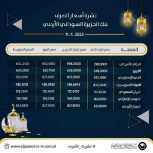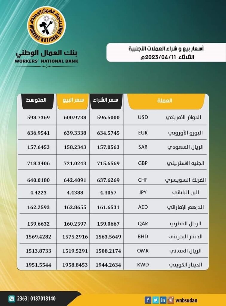 اسعار العملات اليومية من عدد من البنوك السودانية.