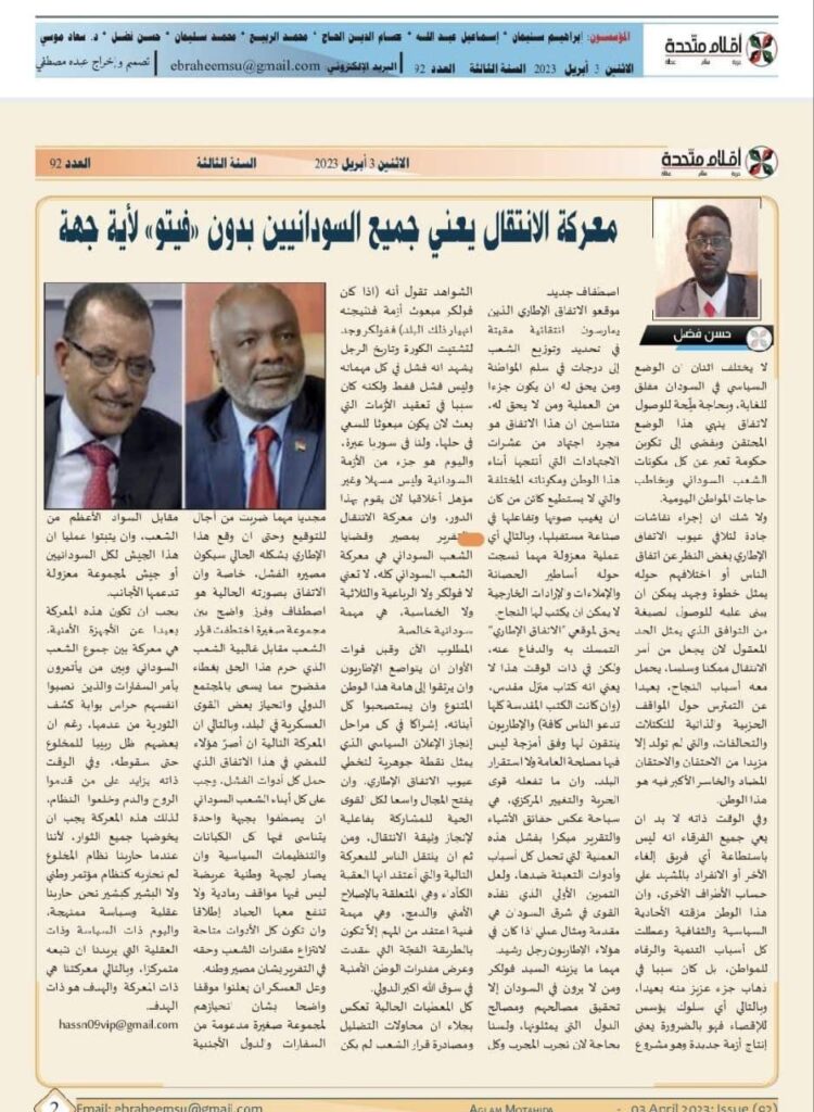 بقلم: تاج السر عثمان بابو منذ وقت مبكر أشارت قوى المعارضة قبل اسقاط البشير في ثورة…