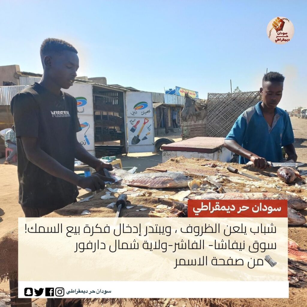 صور:- شباب يلعن الظروف ، ويبتدر إدخال فكرة بيع السمك!سوق نيفاشا- الفاشر-ولاية شمال دارفور