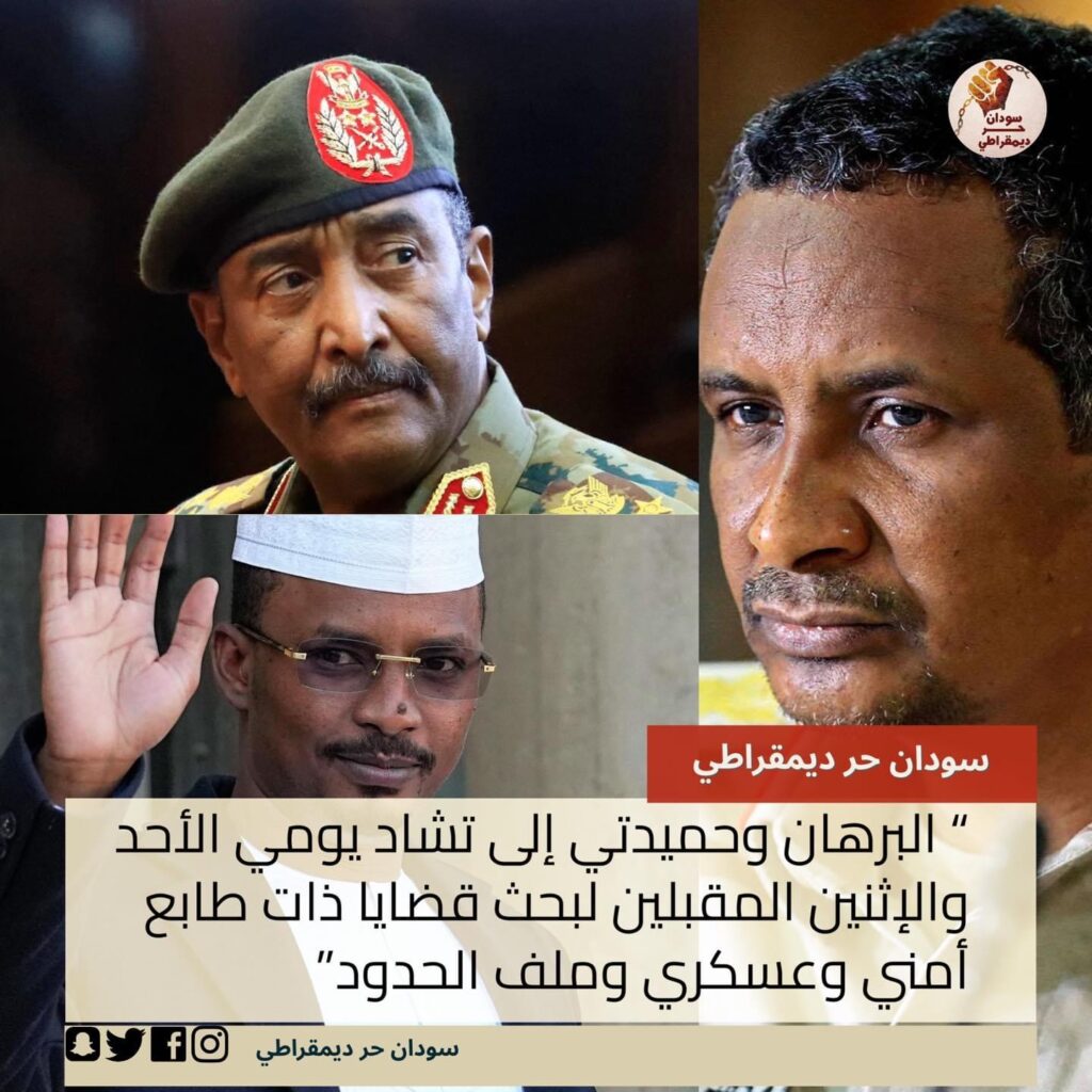 البرهان وحميدتي إلى تشاد يومي الأحد والإثنين المقبلين لبحث قضايا ذات طابع أمني وعسكري وملف الحدود