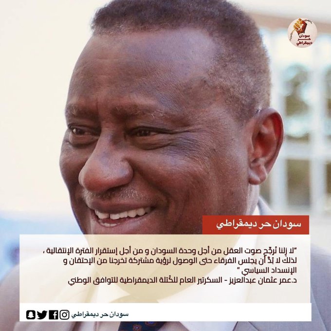 ا زِلنا نُرجِّح صوت العقل من أجل وحدة السودان و من أجل إستقرار الفترة الإنتقالية ،…