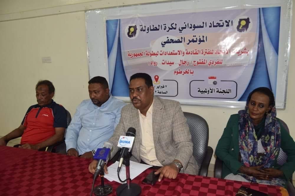 أعلن الاتحاد السوداني لتنس الطاولة عن إنطلاق بطولة الجمهورية فردي مفتوح (رجال.. سيدات.. رواد) في الفترة من ١٦ – ١٨ فبراير الجاري بالصالة الرياضية بالصحافة .