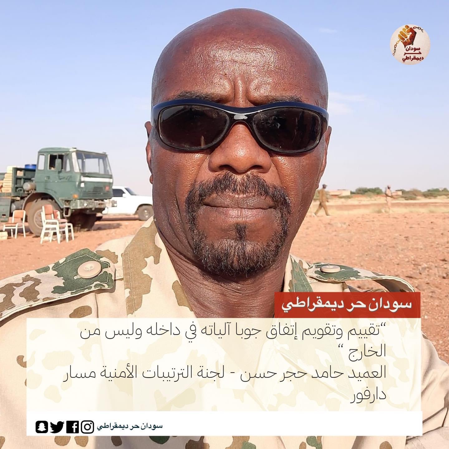 “تقييم وتقويم إتفاق جوبا آلياته في داخله وليس من الخارج “العميد حامد حجر حسن – لجنة الترتيبات الأمنية مسار دارفور