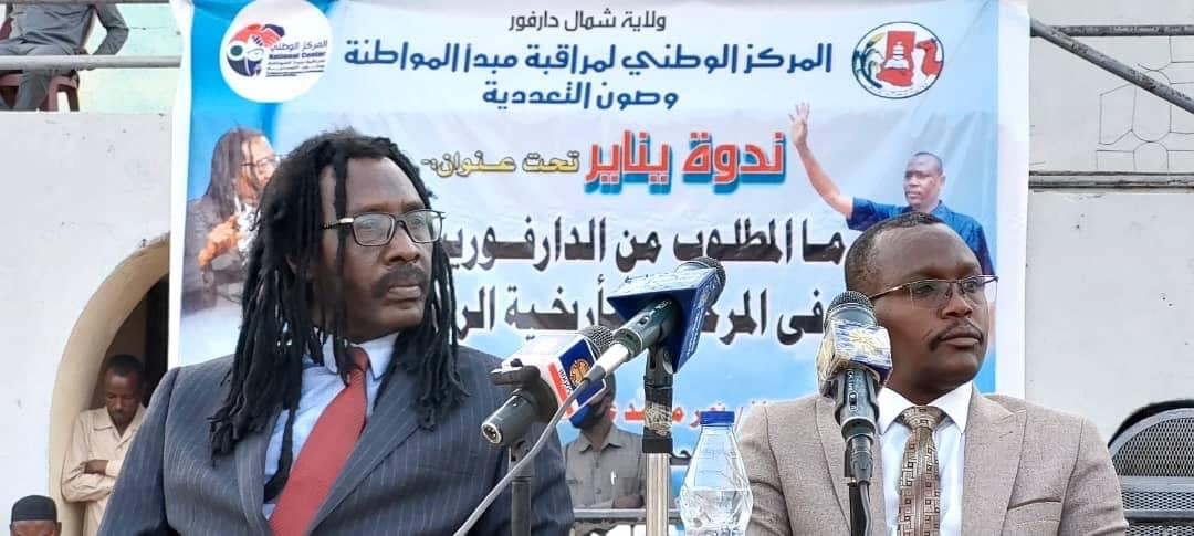 تزامنا مع الحراك الدؤوب الذي يجريها السياسيون السودانيون، ارتأى المركز الوطني لمراقبة مبدأ المواطنة وصون التعددية تنظيم ندوة سياسية كبرى مساء اليوم”السبت” بملاعب الشهيد محمد الفاتح بالفاشر تحت عنوان :” ما المطلوب من الدارفوريين فعله في المرحلة التاريخية الراهنة؟”.