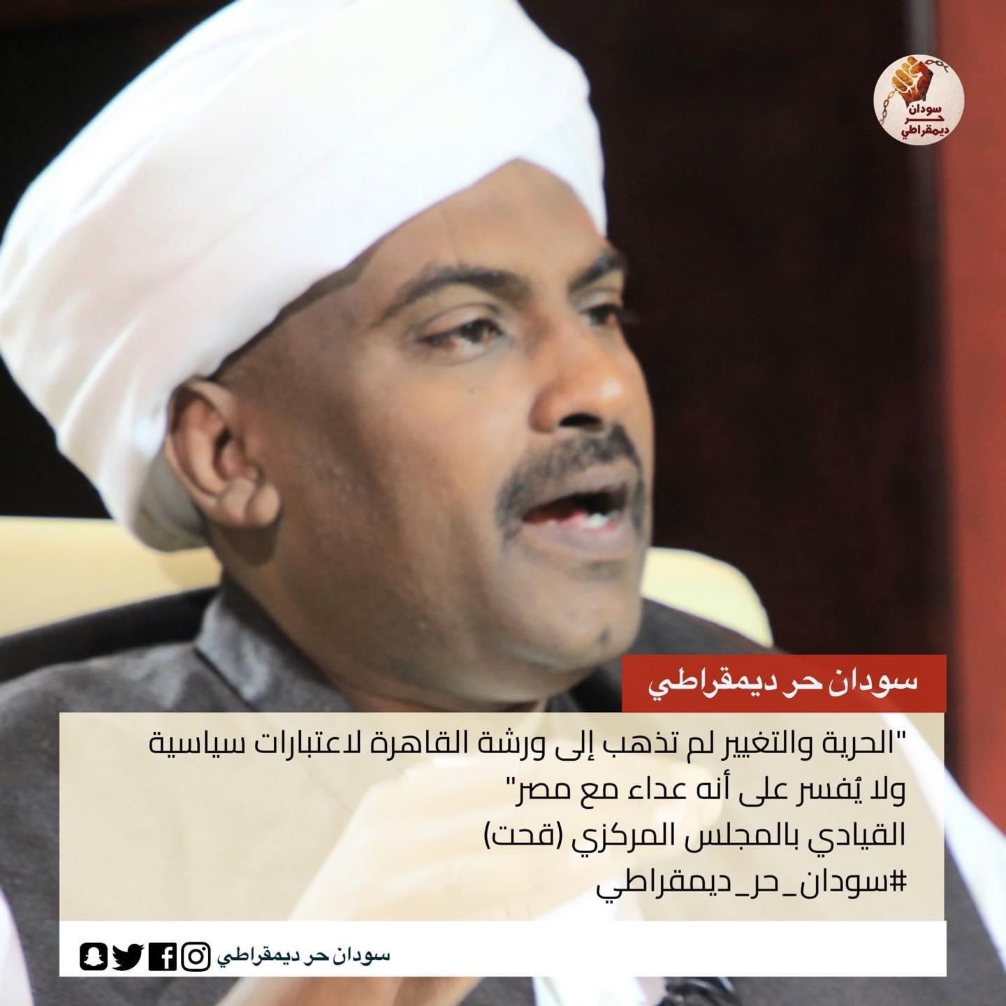 “الحرية والتغيير لم تذهب إلى ورشة القاهرة لاعتبارات سياسية ولا يُفسر على أنه عداء مع مصر”