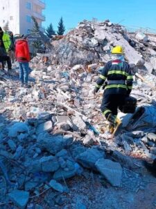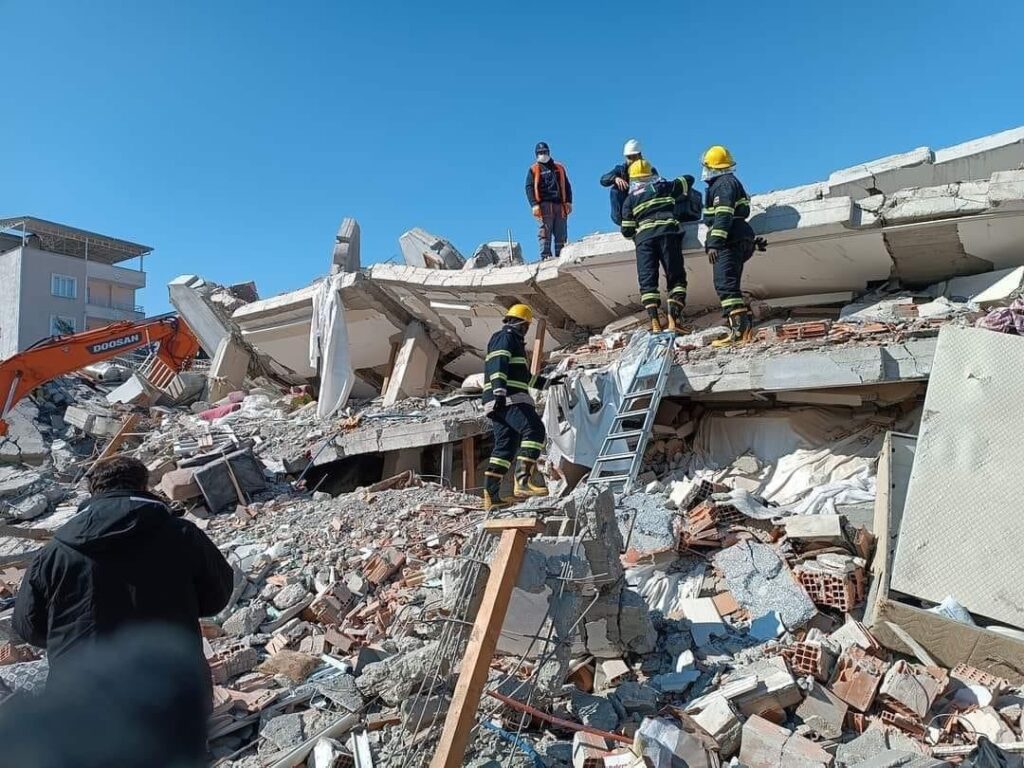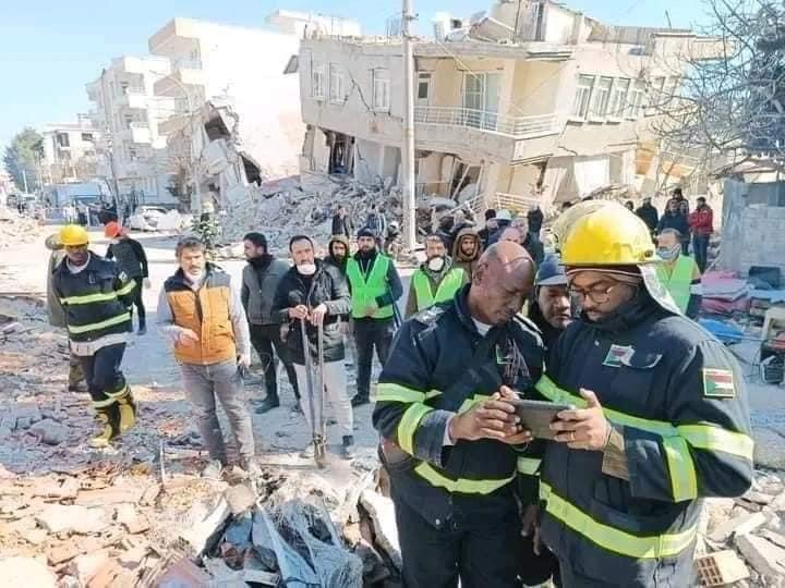 فريق الدفاع المدني السوداني يبدأ عمله في إنقاذ ضحايا زلزال تركيا .