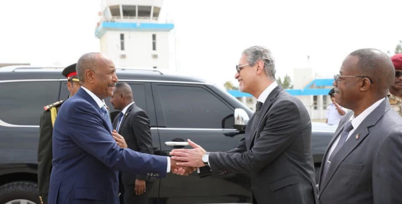 ويرافق رئيس مجلس السيادة السفير الدكتور علي يوسف أحمد الشريف وزير الخارجية والفريق أول أحمد أبراهيم مفضل مدير عام جهاز المخابرات العامة و السفير المصري في السودان هاني صلاح .