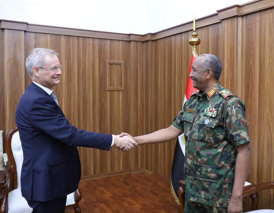 التقى رئيس مجلس السيادة الانتقالي والقائد العام للقوات المسلحة، الفريق أول ركن عبد الفتاح البرهان، اليوم في بورتسودان، مبعوث مملكة النرويج الخاص للسودان، السيد أندريا أستايسن، بحضور وكيل وزارة الخارجية بالإنابة، السفير عمر عيسى.