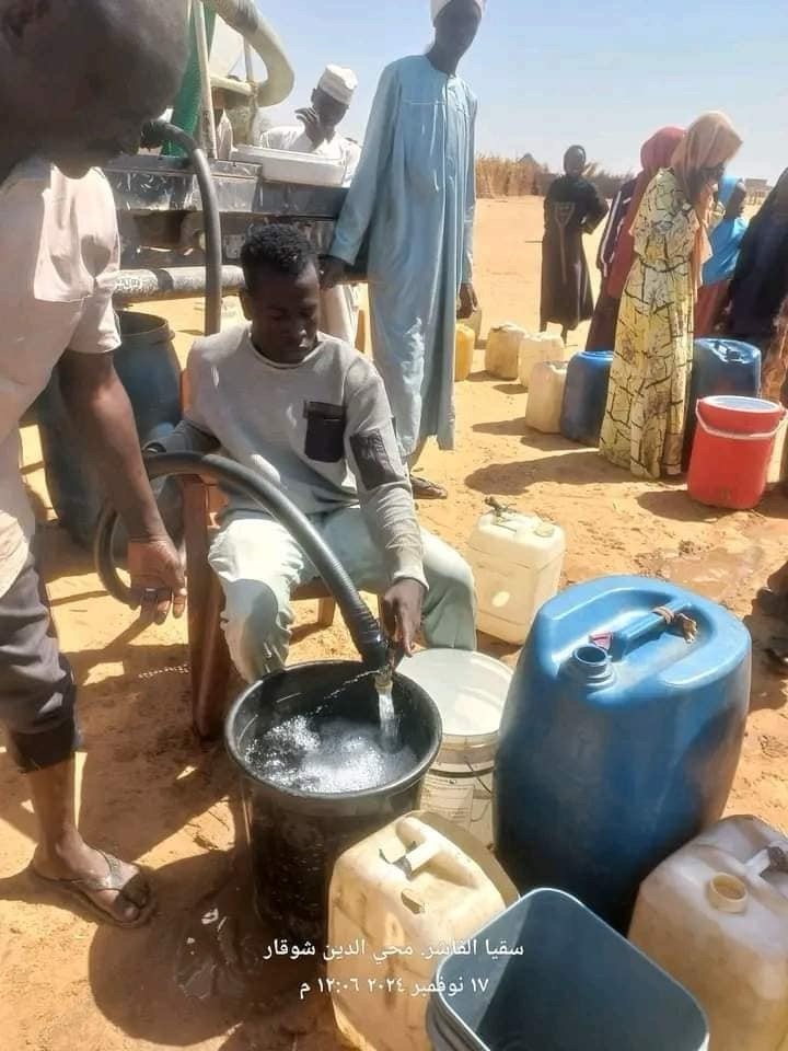 نفذت مبادرة “الله يبردي” الخيرية بمدينة الفاشر، عاصمة ولاية شمال دارفور، اليوم مشروع السقيا لتوزيع مياه الشرب للنازحين في مراكز الإيواء بمسجد الفاشر العتيق، مسجد أم القرى، شالا، عبود، والهنكر. تأتي هذه الخطوة في إطار الجهود الإنسانية المستمرة لدعم النازحين الذين فروا من مناطقهم بحثاً عن الأمان.