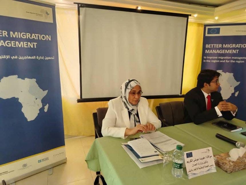 في ختام ورشة المساعدة القانونية لضحايا الاتجار بالبشر خاطبت السيدة وكيل وزارة العدل رئيس اللجنة الوطنية لمكافحة الاتجار بالبشر مولانا هويدا علي عوض الكريم التي نظمتها مكتب مكافحة الجريمة والمخدرات التابع للامم المتحدة ، مكتب السودان بالتعاون مع المكتب الاقليمي بالقاهرة وذلك بالتنسيق مع اللجنة الوطنية لمكافحة الاتجار بالبشر .