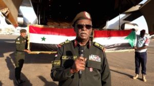وكان في وداع طائرة الشحن بقاعدة الخرطوم الجوية الفريق الركن مجدي إبراهيم عثمان نائب رئيس هيئة الأركان للإمداد ورئيس هيئة الإستخبارات و قائد قاعدة الخرطوم الجوية و القائم بأعمال السفارة السورية بالخرطوم.