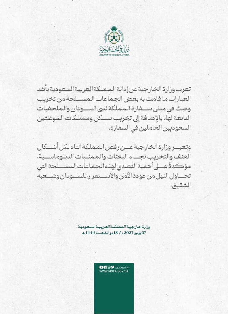 تعرب وزارة الخارجية عن إدانة المملكة العربية السعودية بأشد العبارات ما قامت به بعض الجماعات المسلحة…