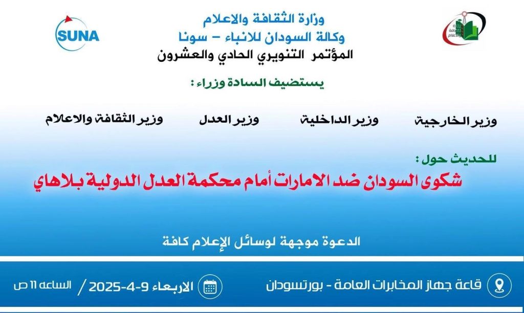 يستضيف المؤتمر التنويري رقم (21) لوزارة الثقافة والإعلام، الذي تنظمه وكالة السودان للأنباء (سونا) في تمام…