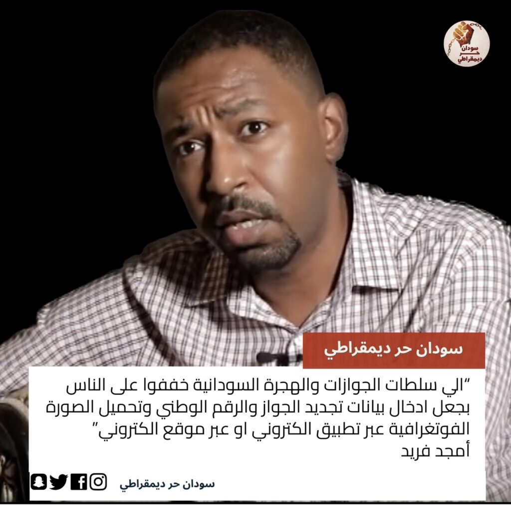 غرّد أمجد فريد المستشار السابق لرئيس الوزراء السابق الدكتور عبدالله حمدوك :الي سلطات الجوازات والهجرة السودانية:خففوا…