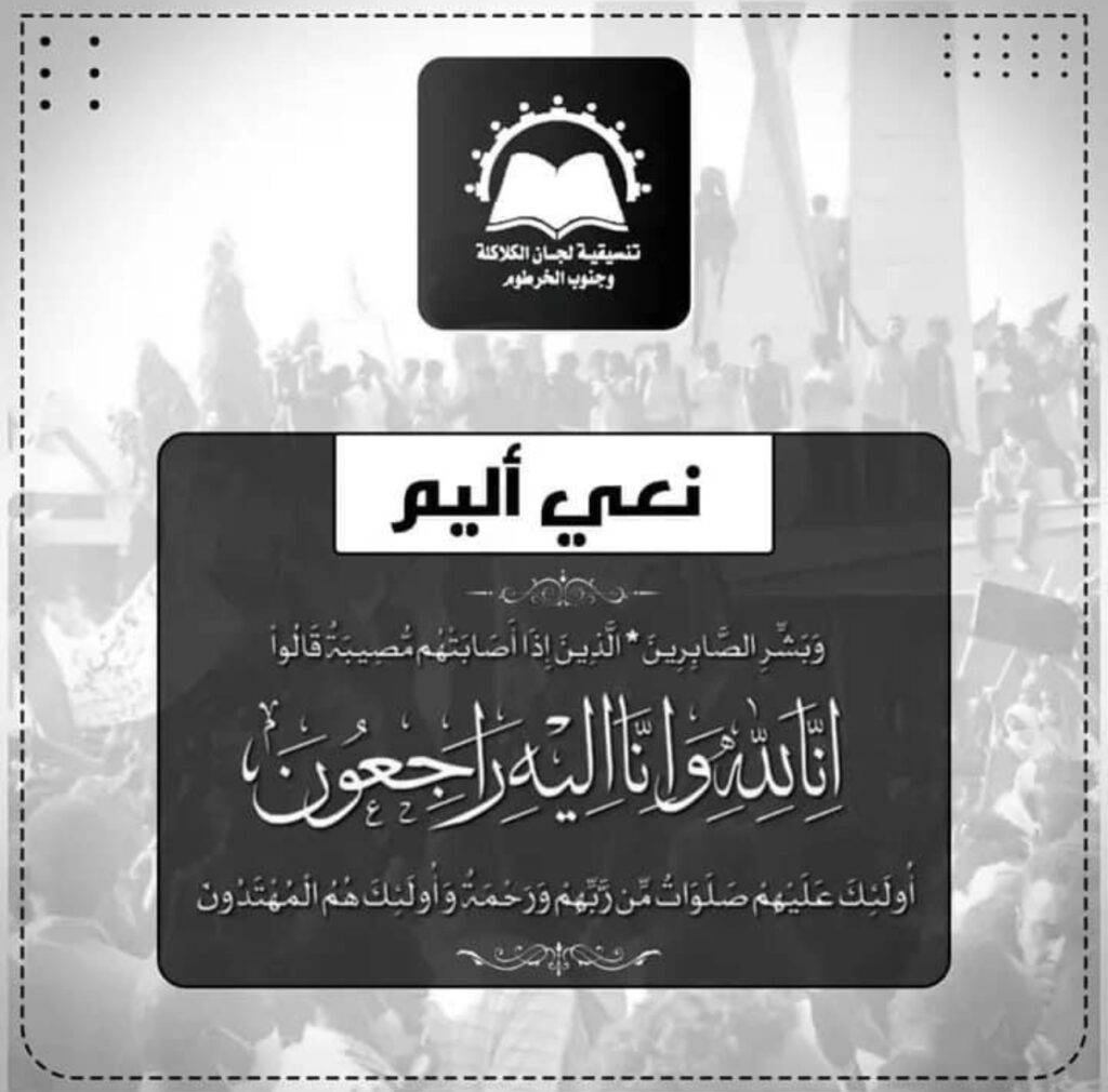 بيان نعي بكل أسى تنعي لجان مقاومة الكلاكلات وجنوب الخرطوم أسر شهداء منطقة العزوزاب وود عجيب…