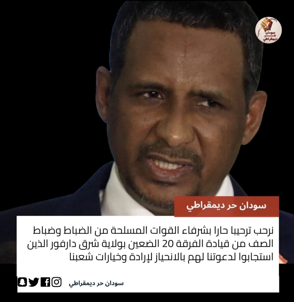 ‏نرحب ترحيبا حارا بشرفاء القوات المسلحة من الضباط وضباط الصف من قيادة الفرقة 20 الضعين بولاية…