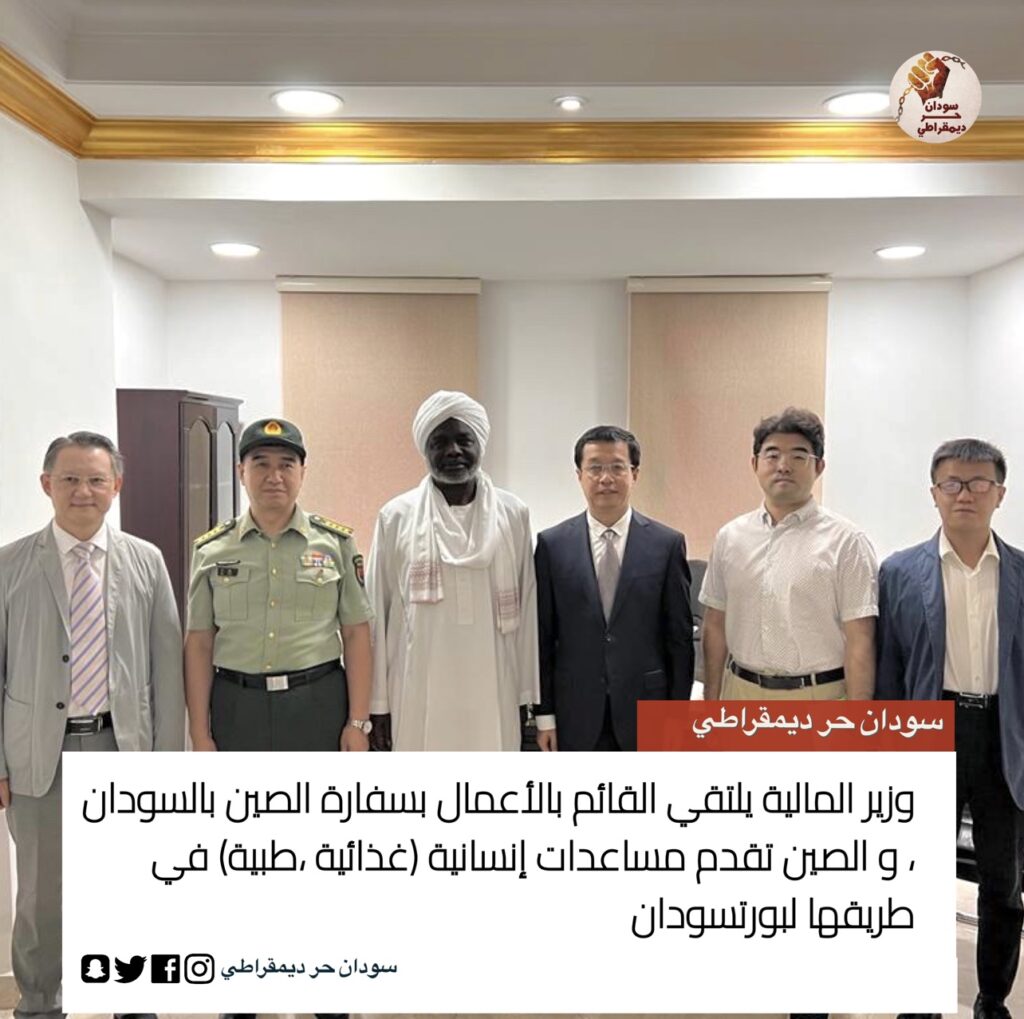 وزير المالية يلتقي القائم بالأعمال بسفارة الصين بالسودان ، و الصين تقدم مساعدات إنسانية (غذائية ،طبية) في طريقها لبورتسودان