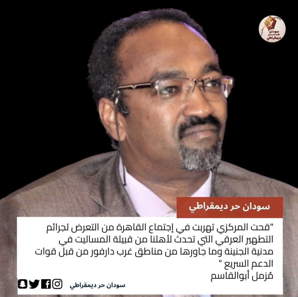 مُزمِّل أبو القاسم يهاجم الدعم السريع و يتهم قحت بالتغطية على جرائم الإبادة الجماعية ضد شعب المساليت