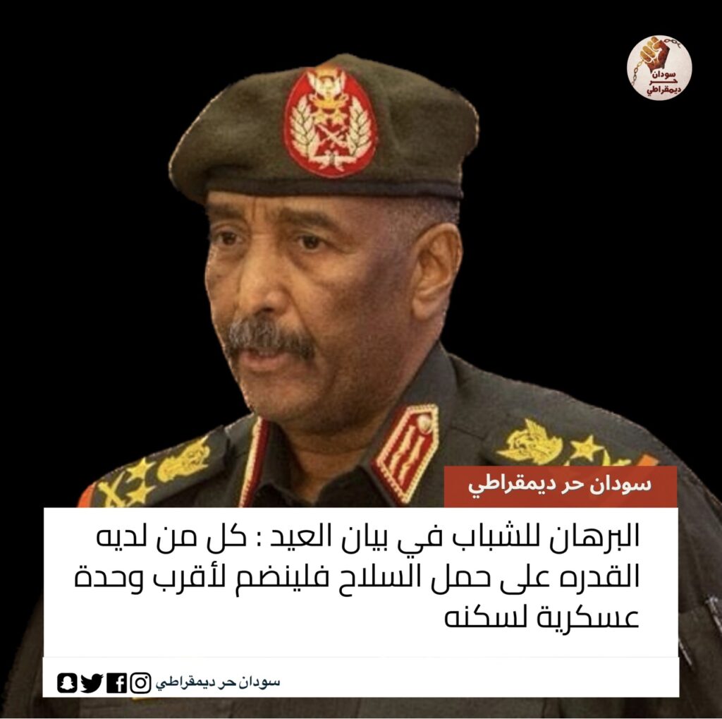 البرهان للشباب في بيان العيد : كل من لديه القدره على حمل السلاح فلينضم لأقرب وحدة عسكرية لسكنه