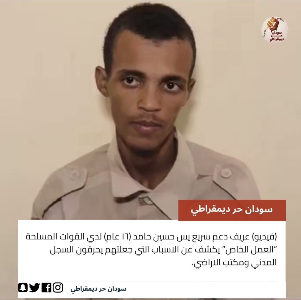 (فيديو) إعترافات خطيرة للعريف دعم سريع يس حسين حامد (١٦ عام) لدي القوات المسلحة ماذا قال؟