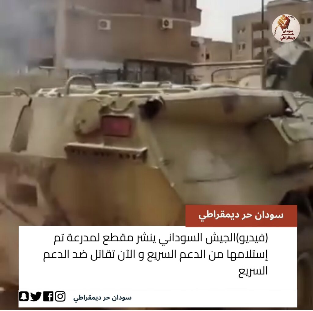 (فيديو)الجيش السوداني ينشر مقطع لمدرعة تم إستلامها من الدعم السريع و الآن تقاتل ضد الدعم السريع
