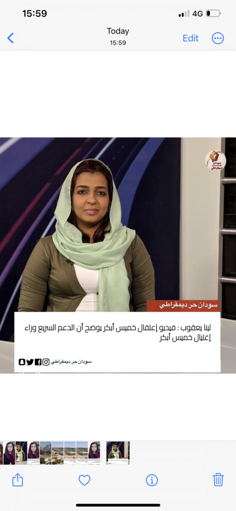 لينا يعقوب : الدعم السريع هو من إغتال خميس أبكر و مقاطع الفيديو التي صوروها تثبت ذلك