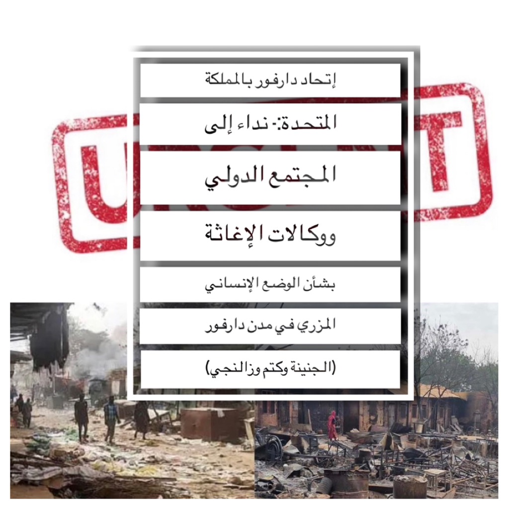 إتحاد دارفور بالمملكة المتحدة:- نداء إلى المجتمع الدولي ومنظمات الإغاثة بشأن الوضع الإنساني المزري في مدن دارفور (الجنينة، كتم وزالنجي)