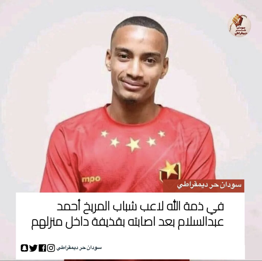 في ذمة الله لاعب شباب المريخ أحمد عبدالسلام بعد اصابته بقذيفة داخل منزلهم.