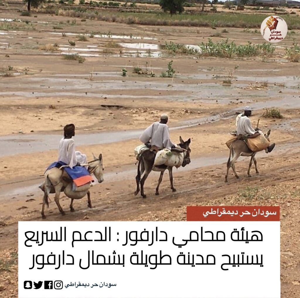 هيئة محامي دارفور : الدعم السريع يستبيح مدينة طويلة بشمال دارفور