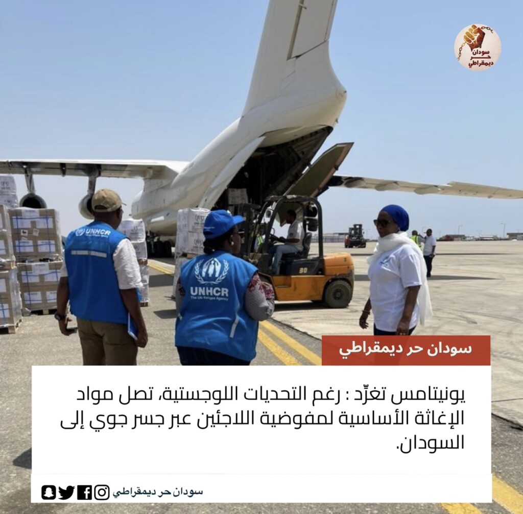 غرّد حساب اليونيتامسر : رغم التحديات اللوجستية، تصل مواد الإغاثة الأساسية لمفوضية اللاجئين عبر جسر جوي…