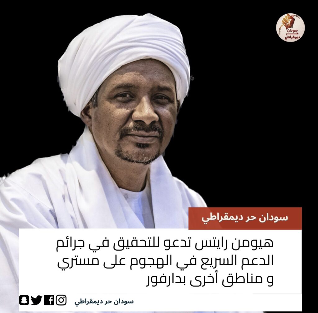 هيومن رايتس تدعو للتحقيق في جرائم الدعم السريع في الهجوم على مستري و مناطق أخرى بدارفور