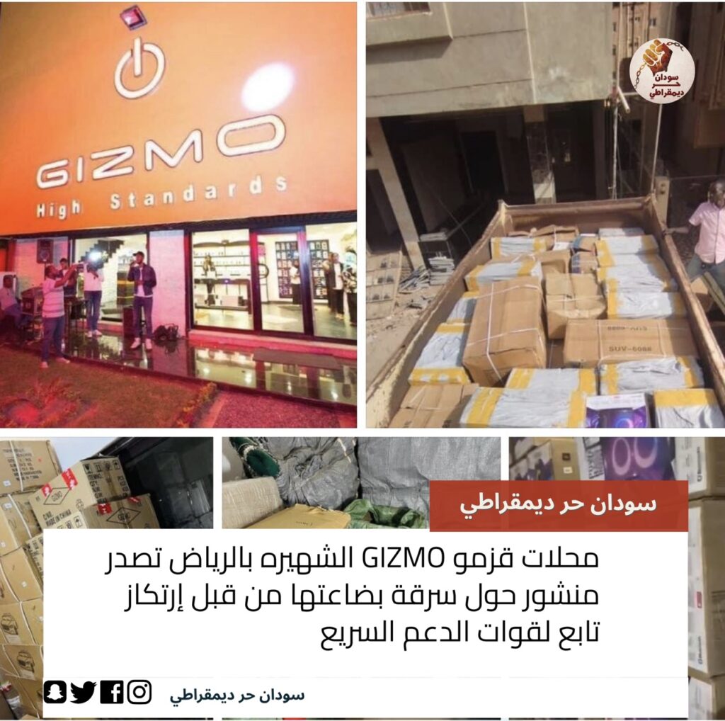 محلات قزمو GIZMO الشهيره بالرياض تصدر منشور حول سرقة بضاعتها من قبل إرتكاز تابع لقوات الدعم السريع