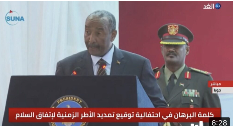 فيديو:- كلمة البرهان في احتفالية توقيع تمديد الأطر الزمنية لاتفاق السلام في السودان